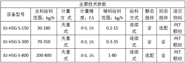 9、给料范围:切片、瓶片、色母粒,其他功能辅料连续定量给料;特殊给料螺杆,稳定可靠,不卡料。