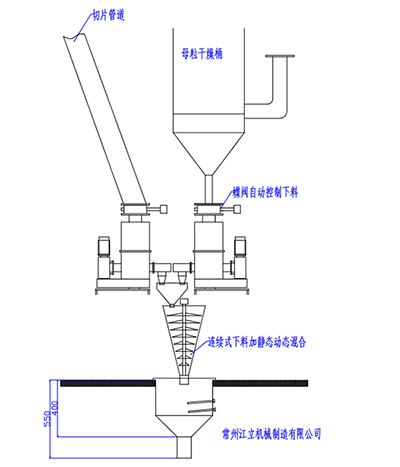 双计量设备介绍:双计量失重式混合给料系统是我公司多年在化纤行业的成功经验与广大客户共同努力的基础上,针对化纤行业准确给料控制和管理的一套实用和理想的计量设备。主要应用于涤纶色纺、锦纶色纺、丙纶色纺,涤锦符合、海岛、T400、工业丝,差别化等其他功能性纤维生产工艺中需要主切片、母粒准确配料添加的工艺场合。